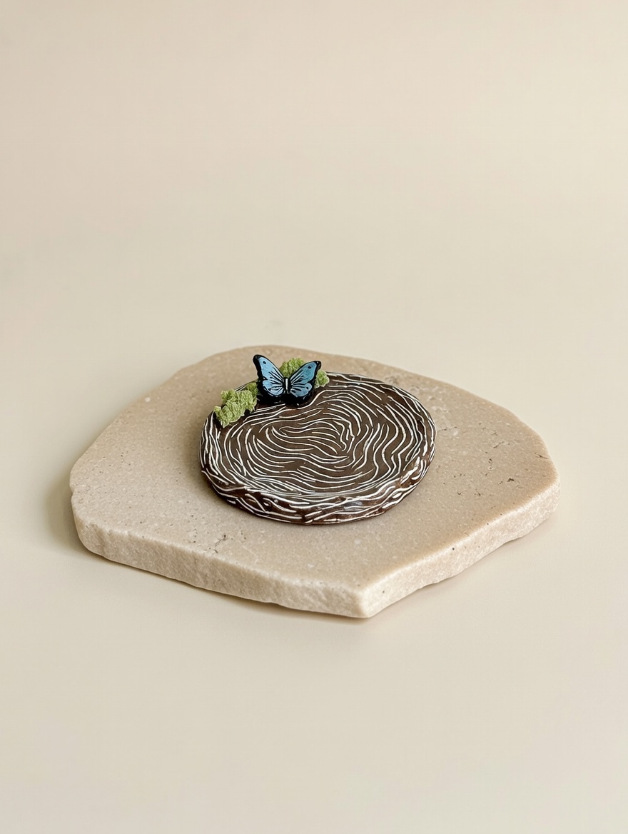 این ماگ با سنگ طبیعی لابرادوریت تزئین شده است؛ سنگی با درخشش‌های آبی-سبز و بازی نوری چشم‌نواز که در نمادپردازی، نشانه‌ی شهود، آرامش ذهن و تعادل انرژی دانسته می‌شود و به اثر هویتی خاص و اسرارآمیز می‌بخشد.